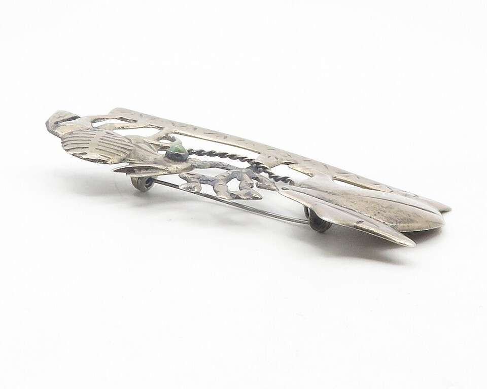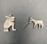 MEXICO 925 Silver Vintage Antique Turquoise Man & Donkey Brooch Pin BP4435