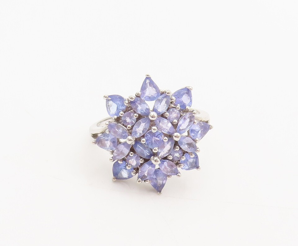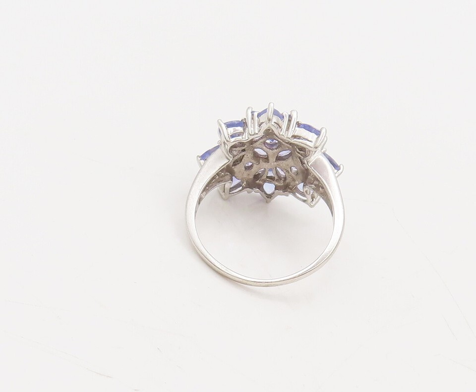 10K GOLD Vintage Multi Shaped Tanzanite Dainty White Gold Ring Sz 7 GR688
