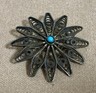 ISRAEL 925 Sterling Silver Vintage Petite Turquoise Floral Brooch Pin BP5277