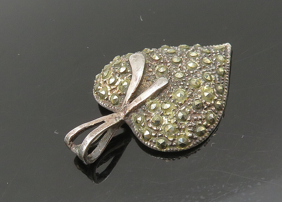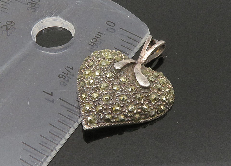 925 Sterling Silver Vintage Sparkling Marcasite Love Heart Pendant PT18054