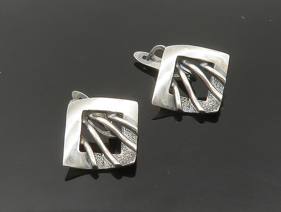 EUROPEAN 925 Sterling Silver Vintage Shiny Textured Drop Earrings EG11560