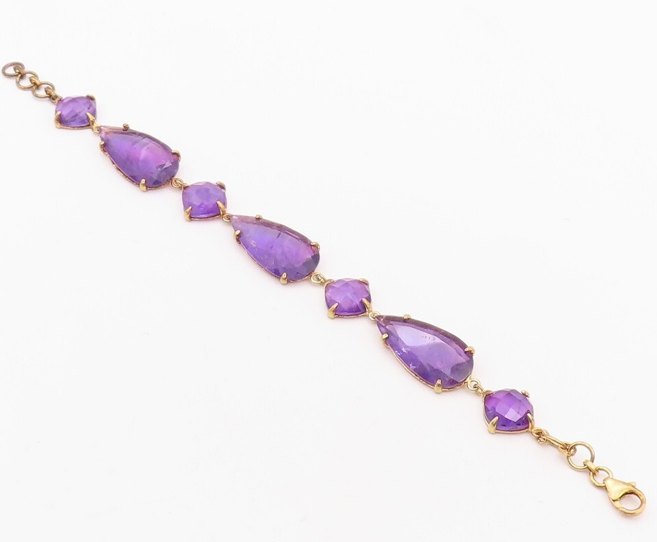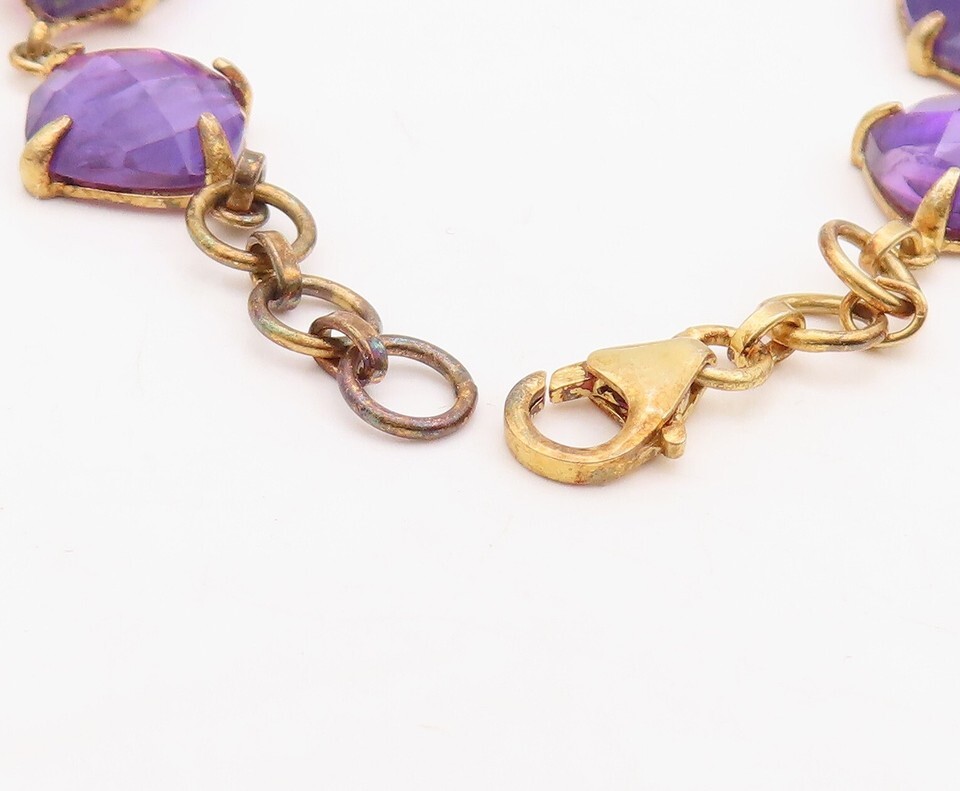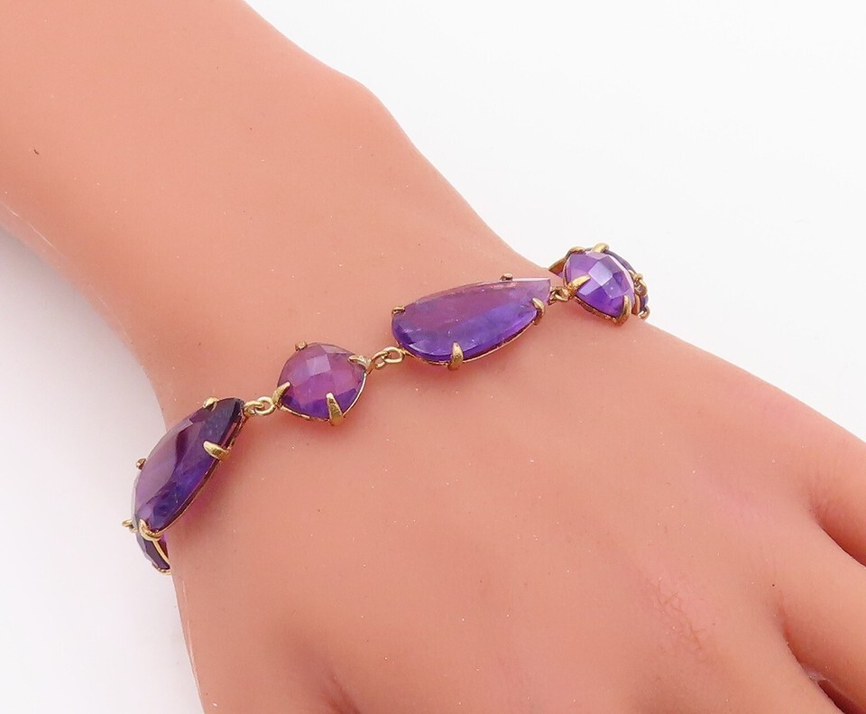925 Sterling Silver Vintage Bracelet Gold Plated Multi Shape Amethyst BT10841