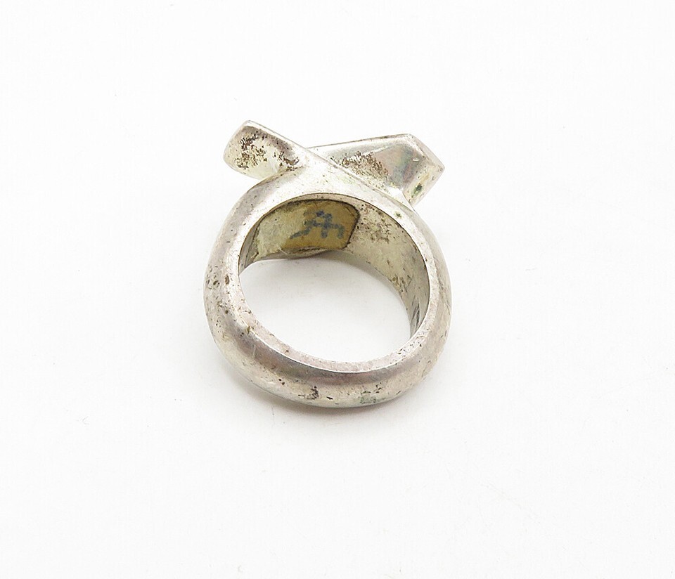 925 Sterling Silver Vintage Shiny Modernist Sculpted Band Ring Sz 8.5 RG8898