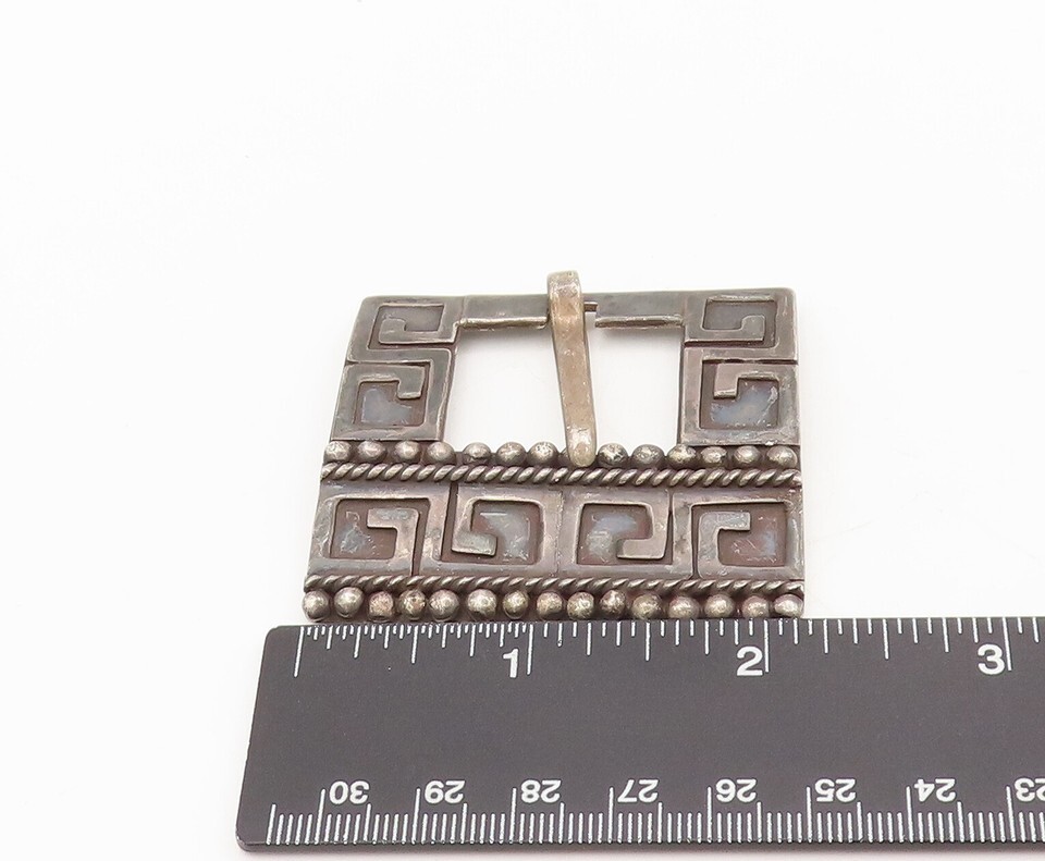 TAXCO 925 Silver Vintage Antique Beaded Carved Greek Maze Belt Buckle TR3665