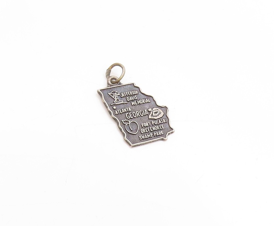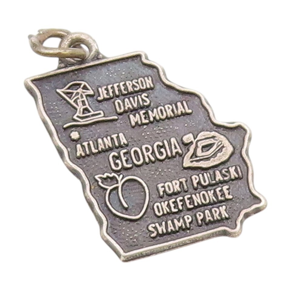 925 Sterling Silver Vintage Pendant Atlanta Georgia State Map Charm PT25124