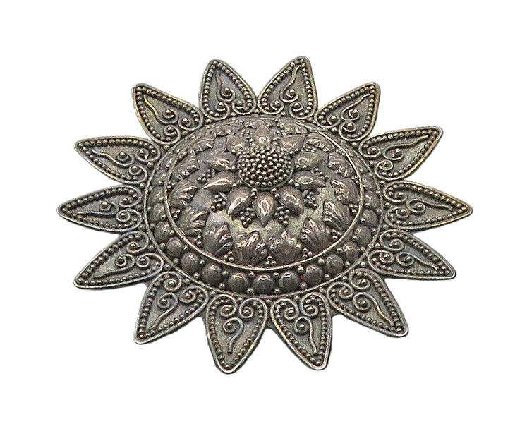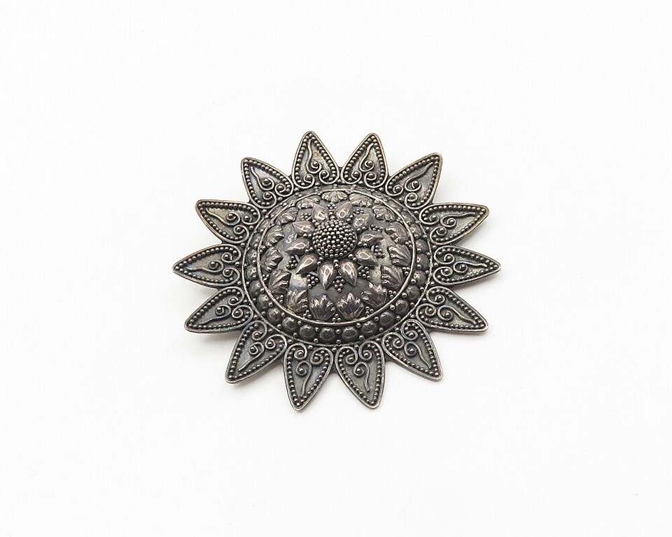 SUARTI BALI 925 Silver Vintage Ornate Detail Flower Motif Brooch Pin BP7229