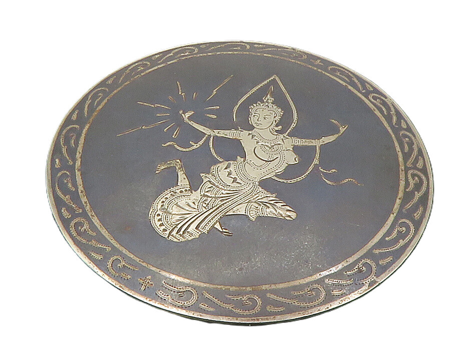 SIAM 925 Sterling Silver Vintage Enamel Niello Dancer Brooch Pin BP5358
