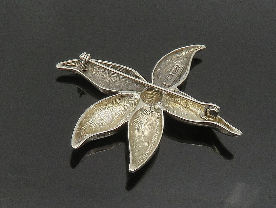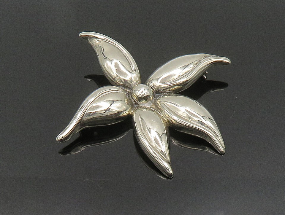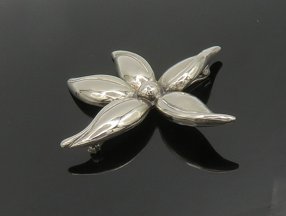 925 Sterling Silver Vintage Shiny Curved Flower Brooch Pin BP9488