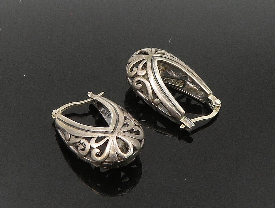 925 Sterling Silver Vintage Scroll Design U Shape Hoop Earrings EG11532