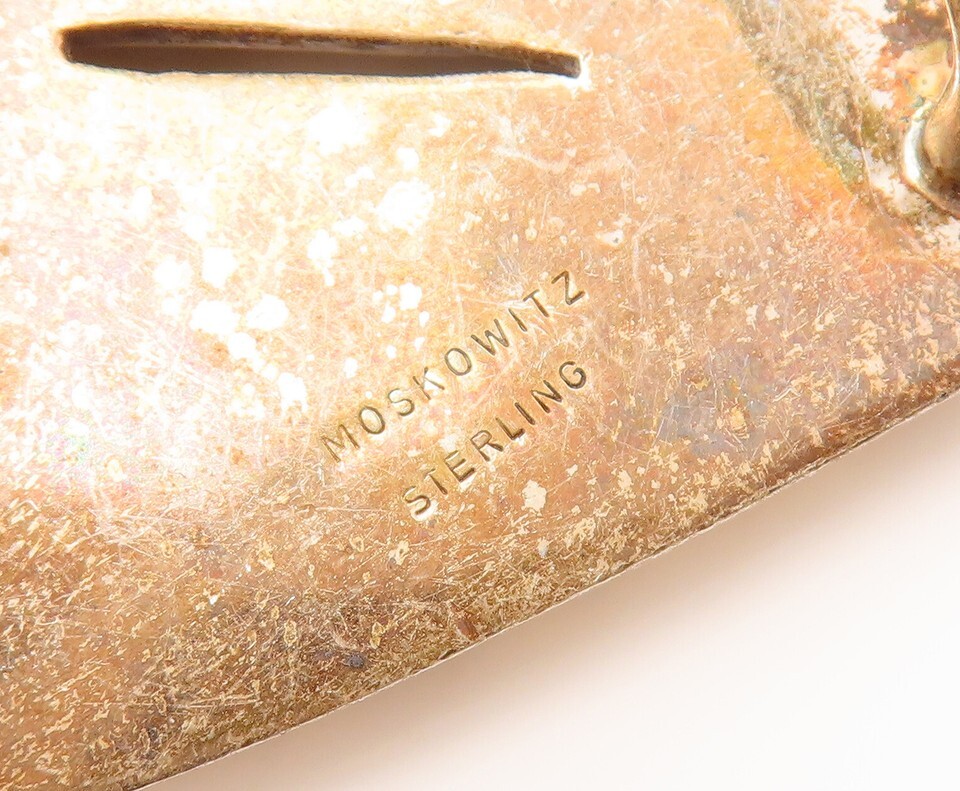 MOSKOWITZ 925 Silver Vintage Heavy Split Rectangle Carved Belt Buckle TR3668