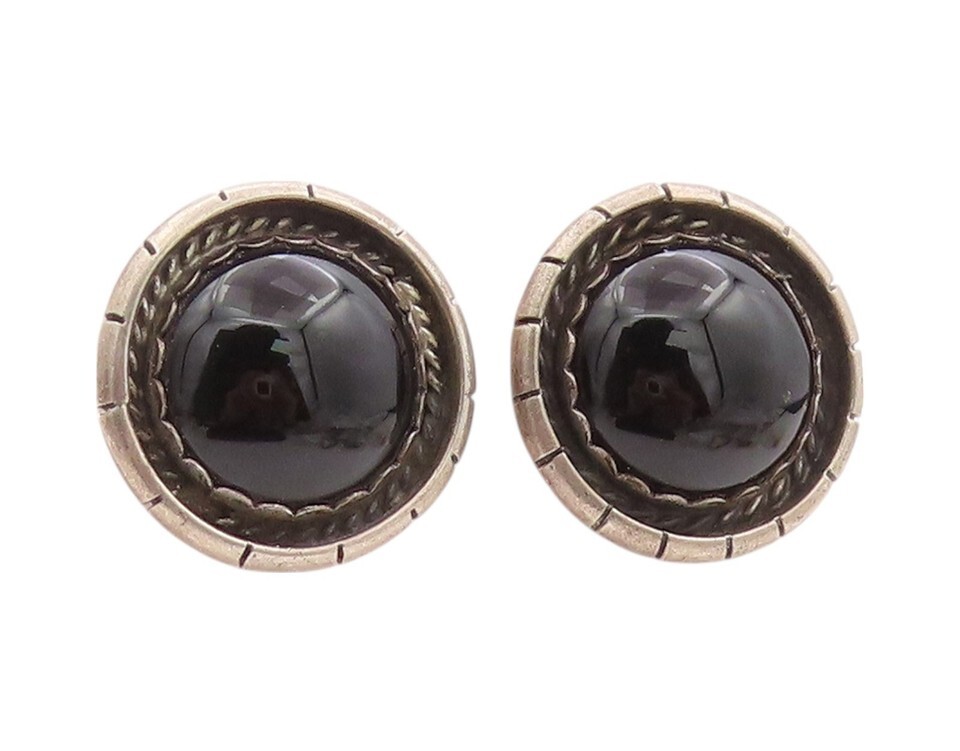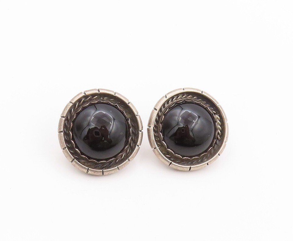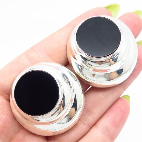 925 Sterling Silver Vintage Earrings Large Cabochon Onyx Carved Design EG13541