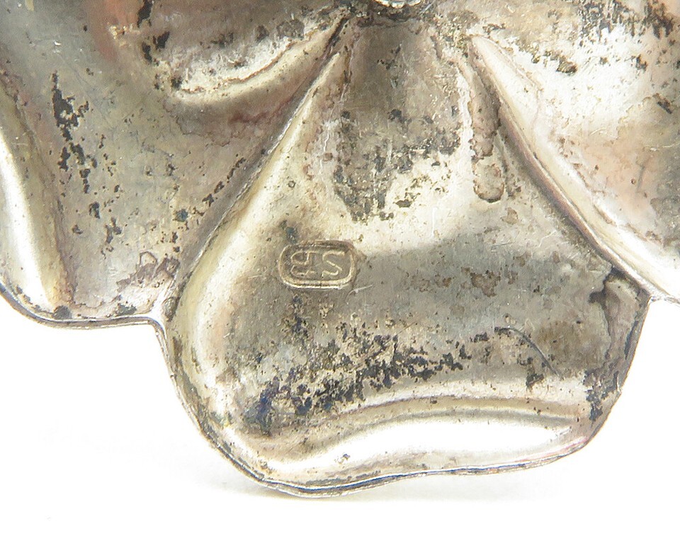 925 Sterling Silver Vintage Shiny Sculpted Flower Motif Brooch Pin BP4385