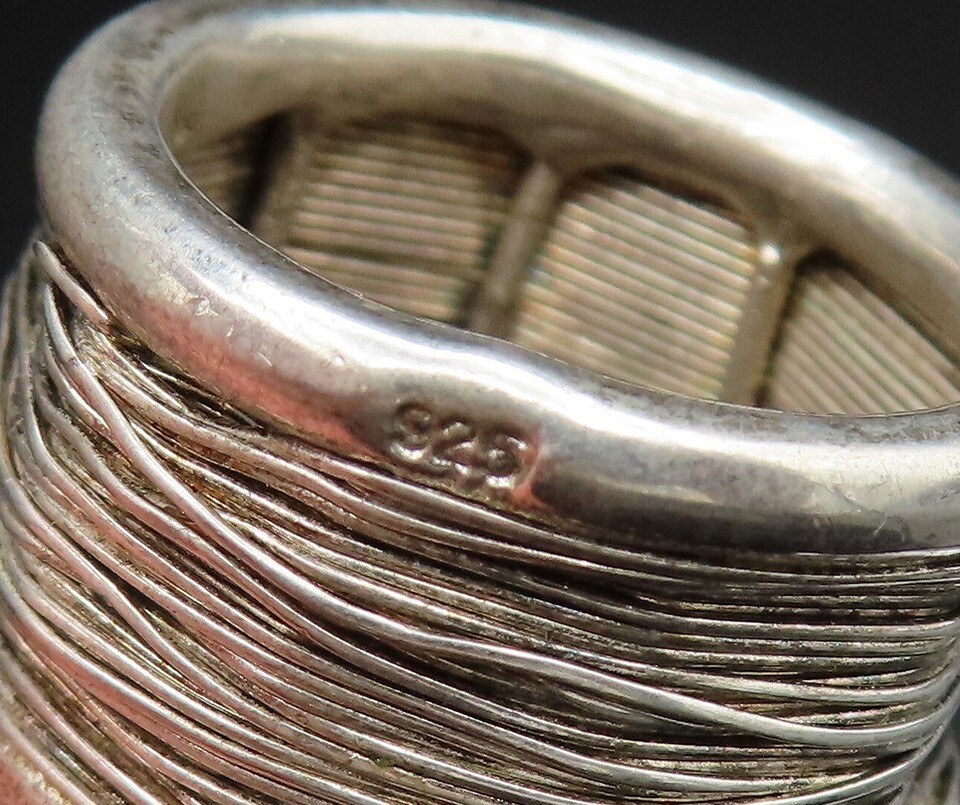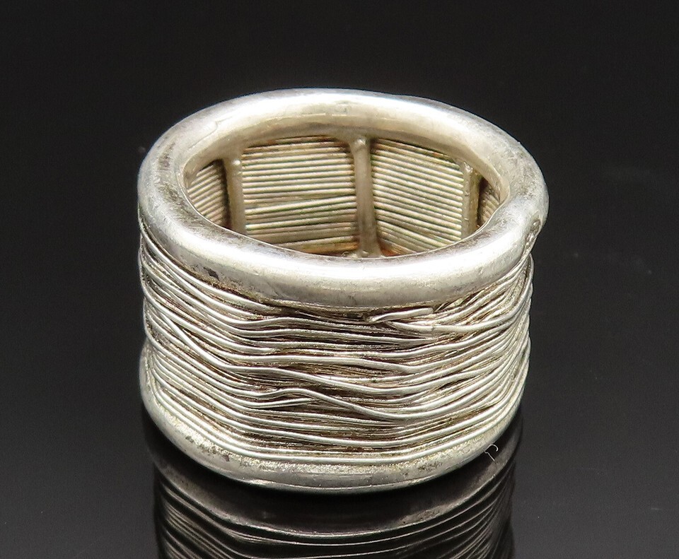 925 Sterling Silver Vintage Wire Wrapped Wide Band Ring Sz 7.5 RG24835
