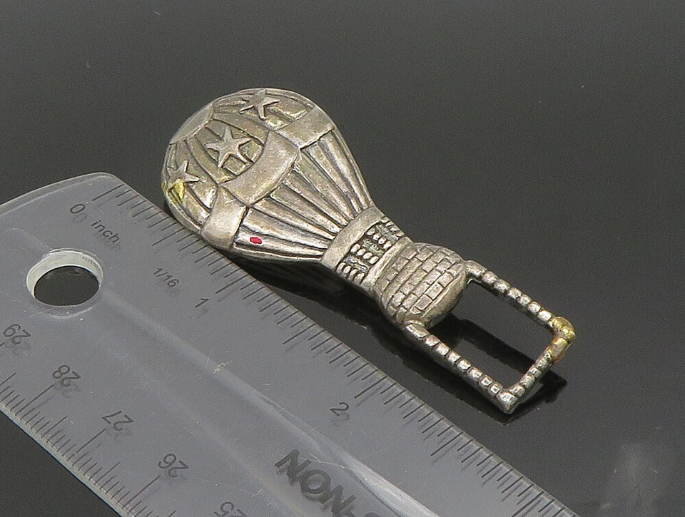 925 Sterling Silver Vintage Star Ribbed Hot Air Balloon Brooch Pin BP9486