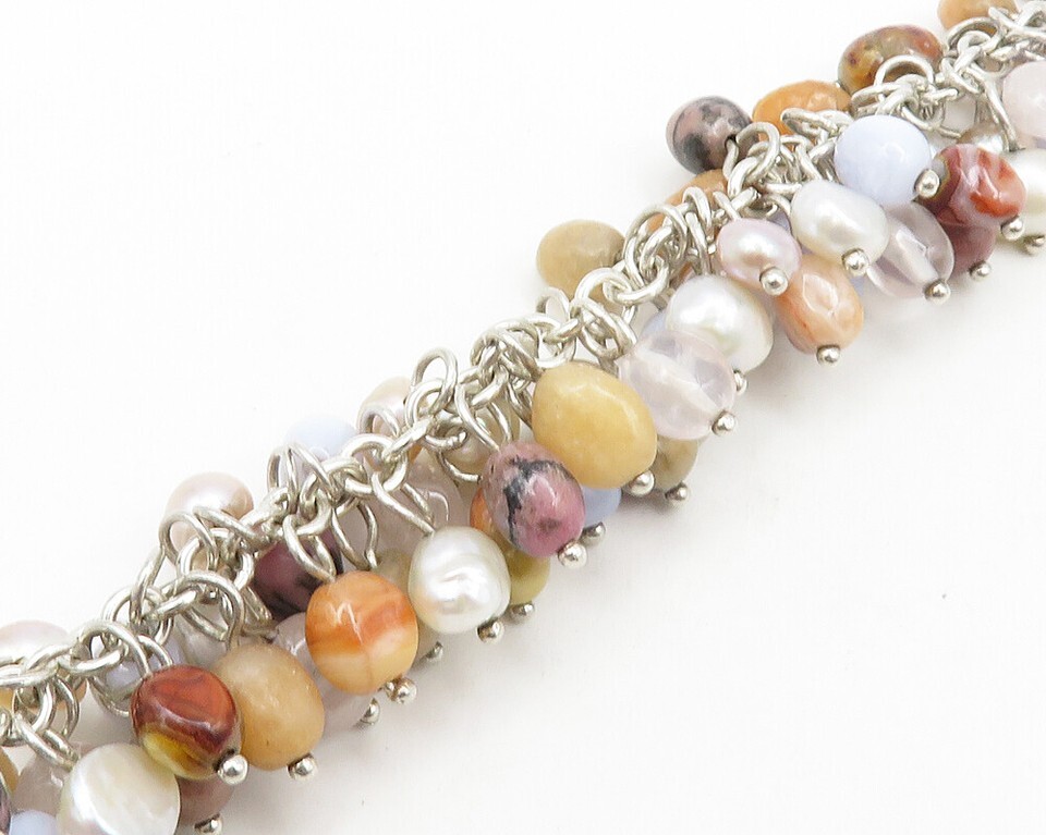 WHITNEY KELLY 925 Silver Vintage Pearls & Multi Stone Beaded Bracelet BT7805