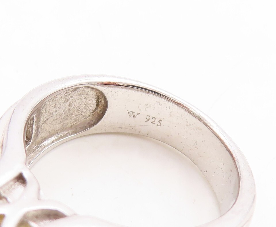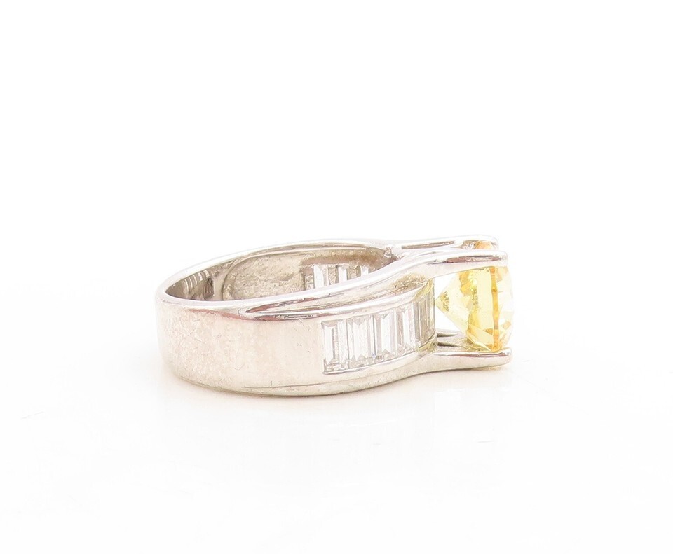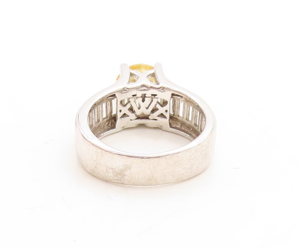 925 Sterling Silver Vintage Ring Rectangle CZ Band Round Citrine Sz 7 RG31184