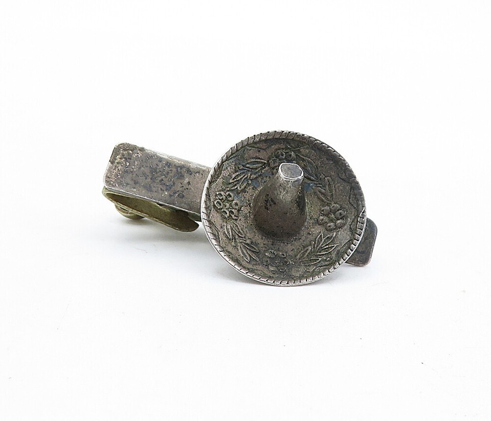 JM 925 Sterling Silver Vintage Antique Petite Sombrero Motif Tie Clip TR1241