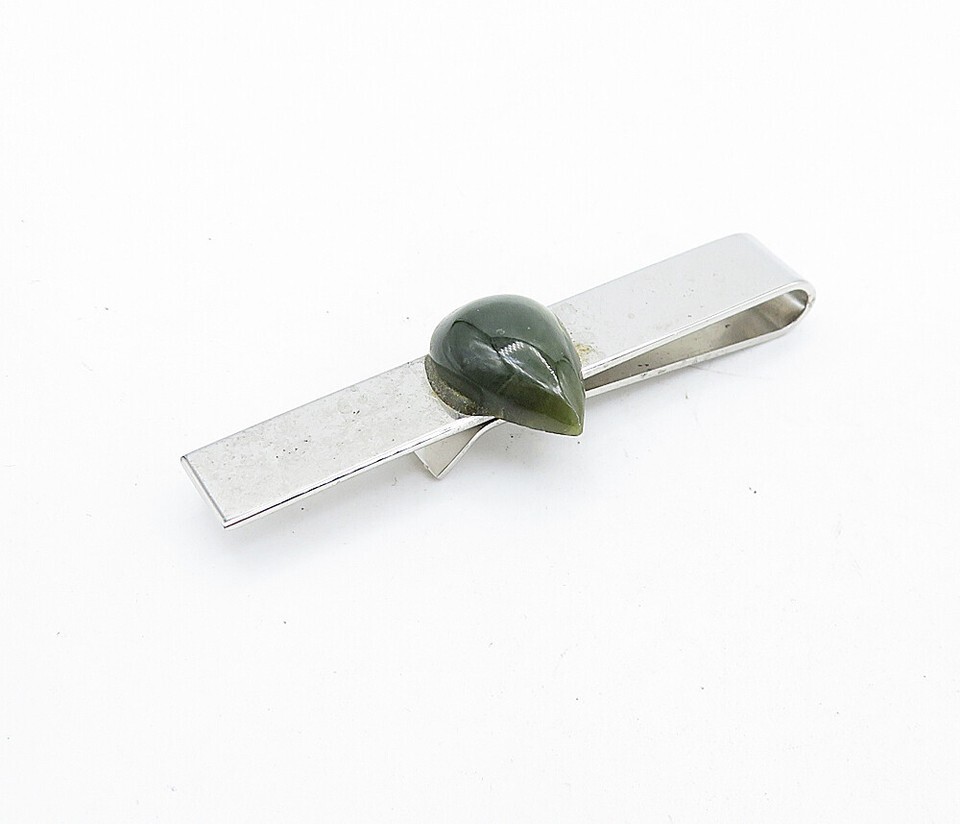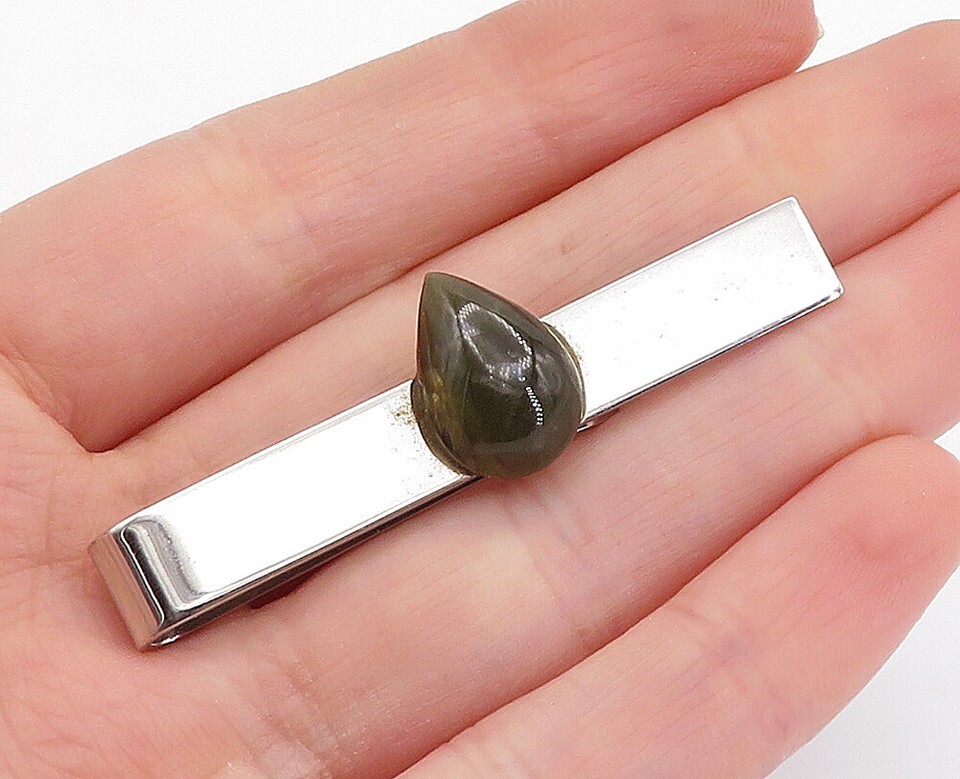AVEDON 925 Sterling Silver Vintage Teardrop Jasper Shiny Tie Clip TR1271