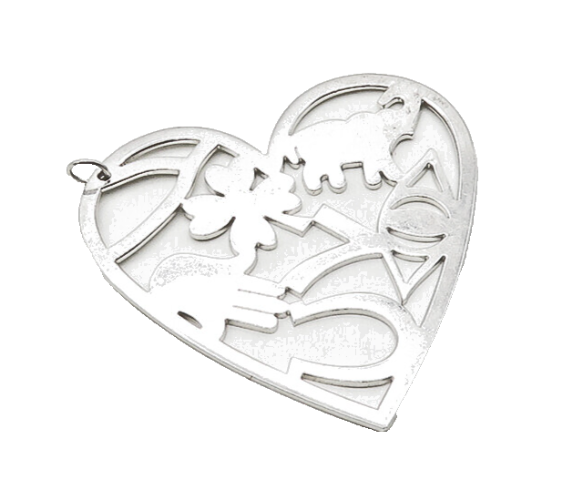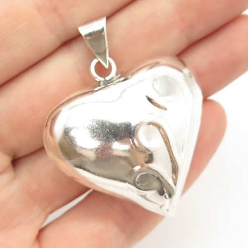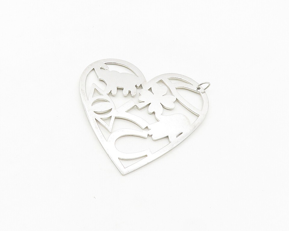 925 Sterling Silver Vintage Shiny Good Luck Cutout Heart Pendant PT14407