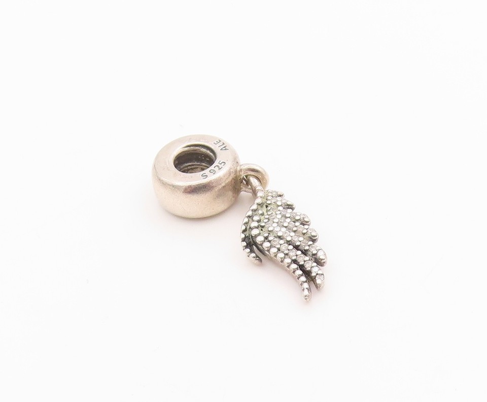 925 Sterling Silver Vintage Pendant PANDORA CZ Inlay Wings Of Angel PT24400