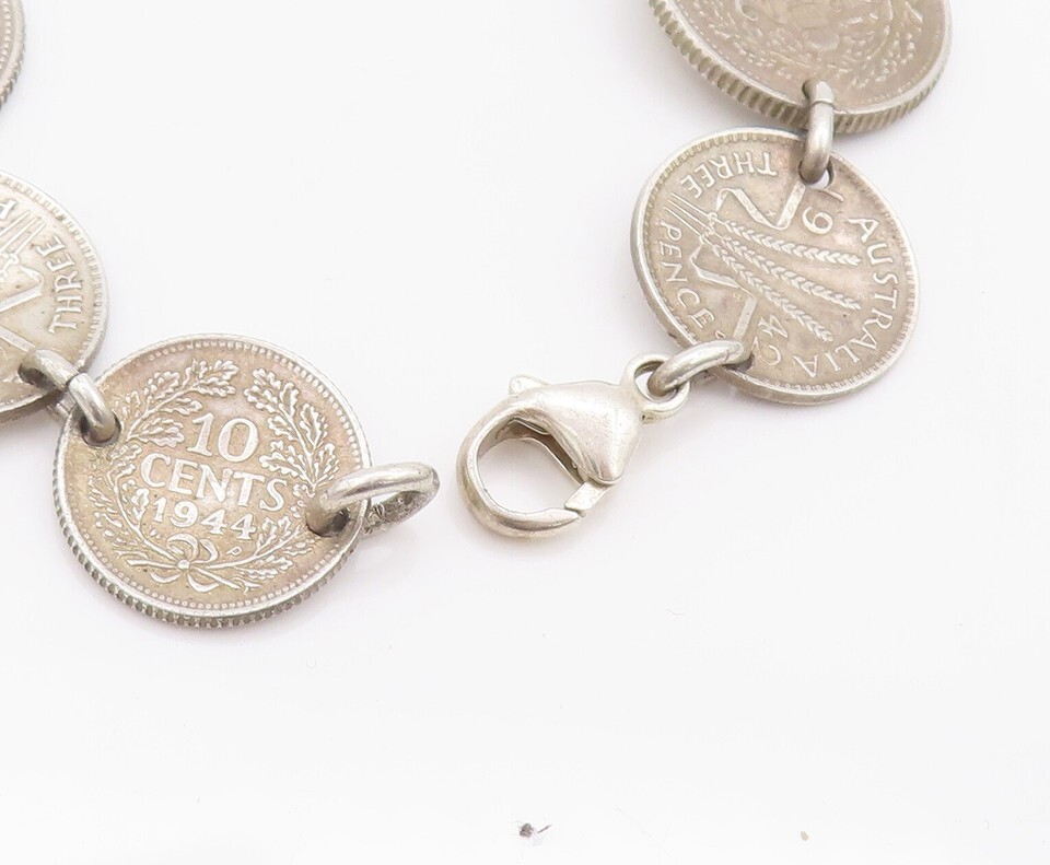 925 Sterling Silver Vintage Bracelet Solid Etched Australian Link Coins BT10286
