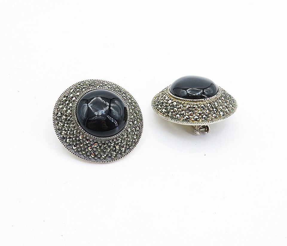 JUDITH JACK 925 Silver Vintage Black Onyx & Marcasite Drop Earrings EG2897