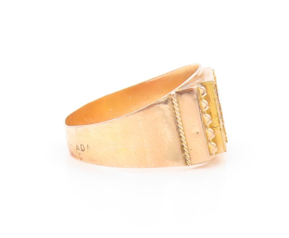 Authenticity Guarantee 14K GOLD Vintage Ring ALBANIAN Carved Symbolic Motif ...