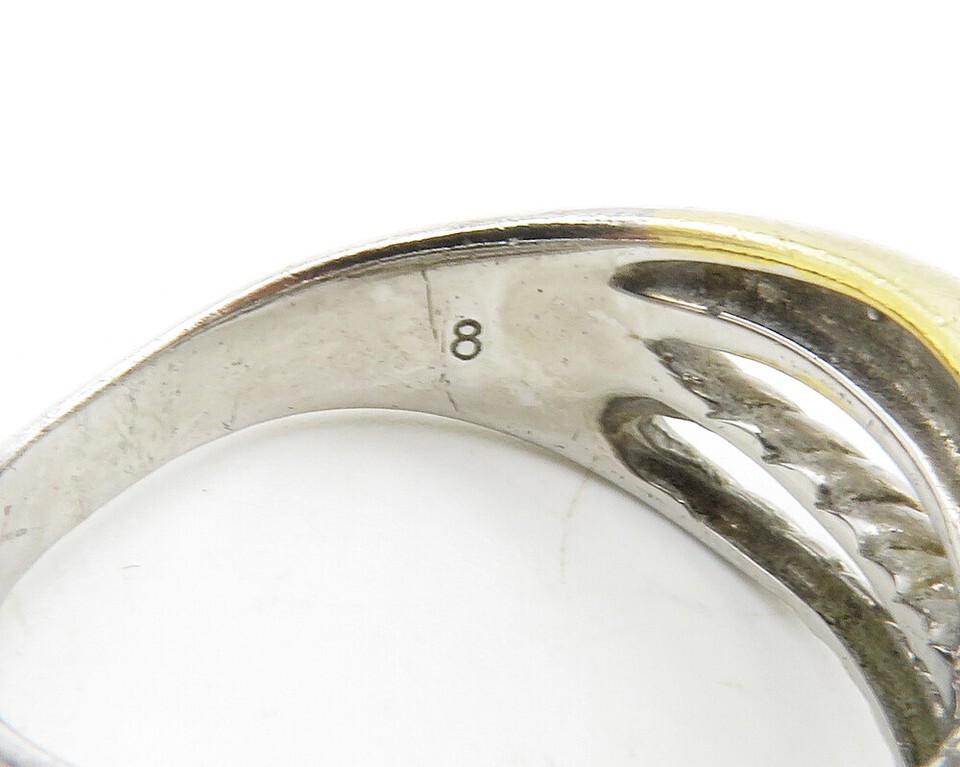 925 Silver Vintage Genuine Diamonds Rope Twist Split Band Ring Sz 8 RG13364
