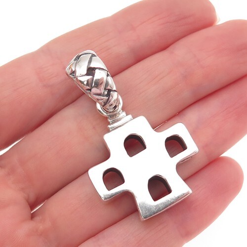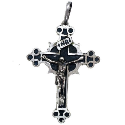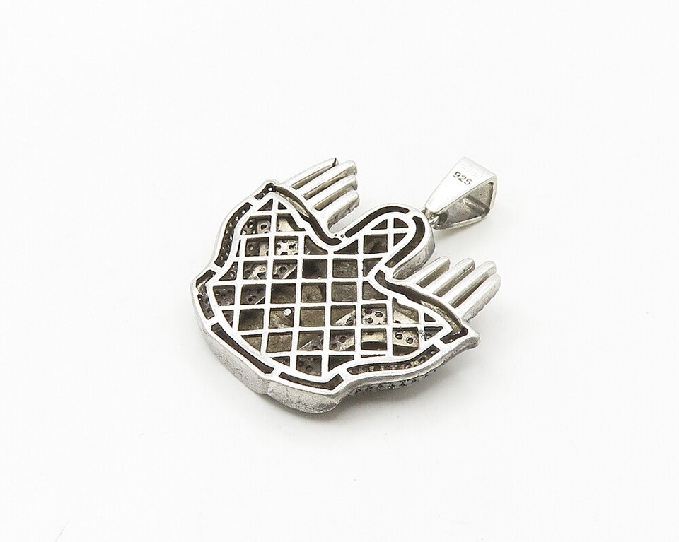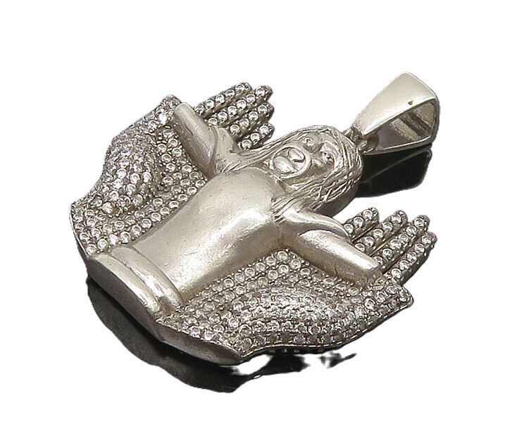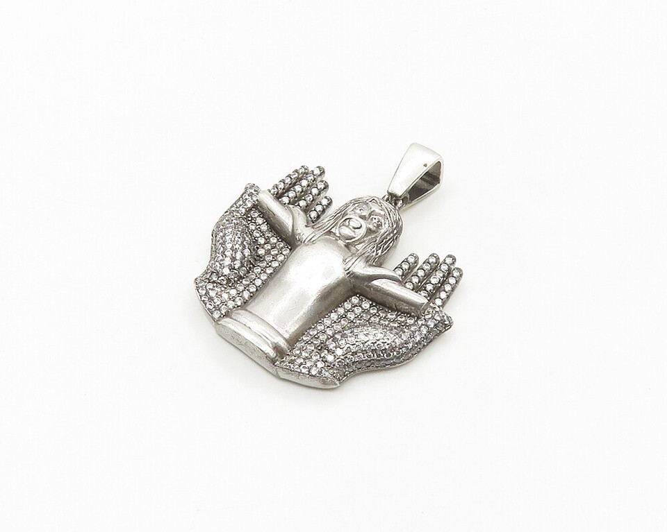 925 Sterling Silver Vintage Cubic Zirconia Jesus Cross Hands Pendant PT14436