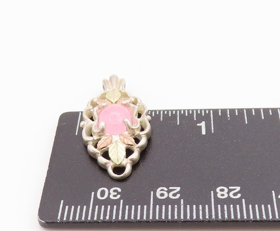 12k Gold 925 Sterling Silver Vintage Pendant Floral Carved Gemstone PT24395