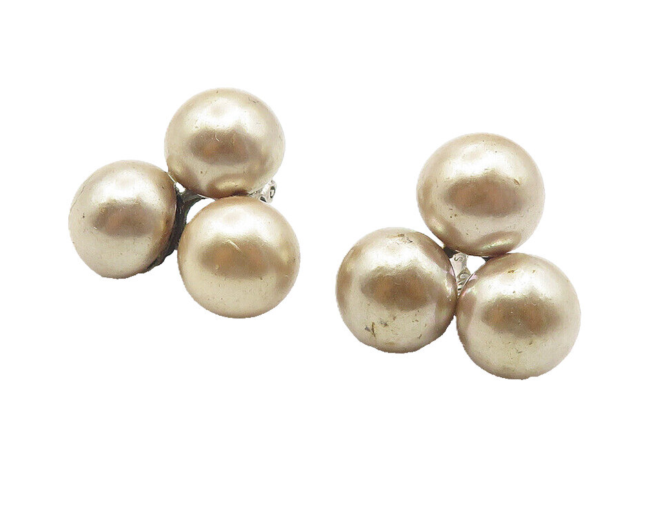 925 Sterling Silver Vintage Golden Pearls Floral Non Pierce Earrings EG6018