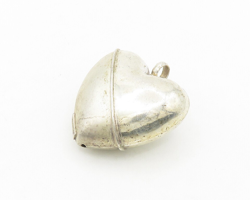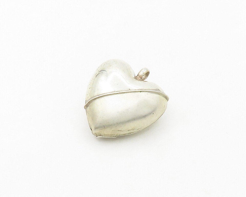 925 Sterling Silver Vintage Shiny Matte Puffy Love Heart Pendant PT14406