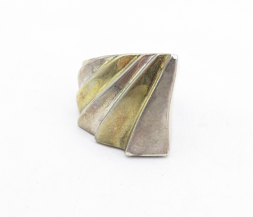 925 Sterling Silver Vintage Modernist Two Tone Statement Ring Sz 6.5 RG5739
