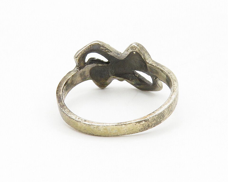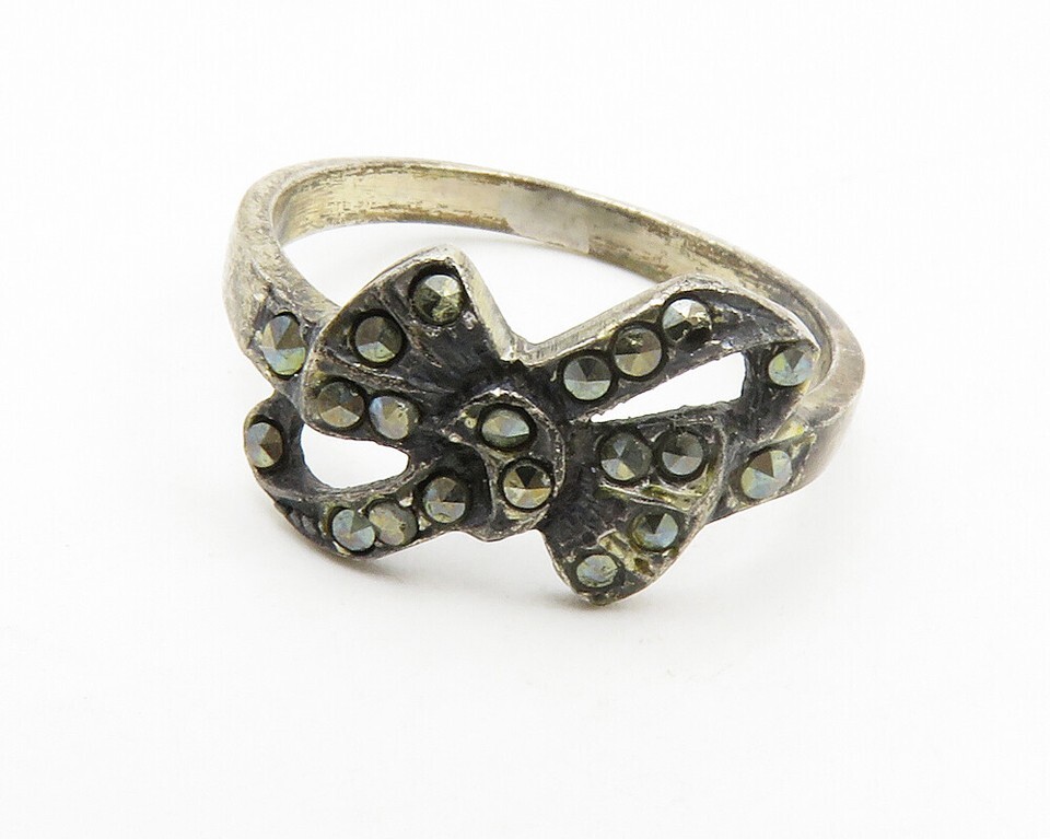 925 Sterling Silver Vintage Marcasite Ribbon Bow Band Ring Sz 6.5 RG14007