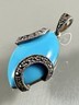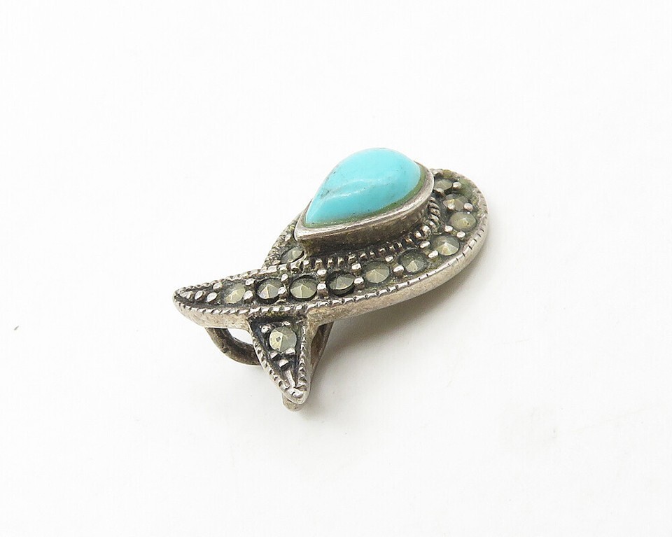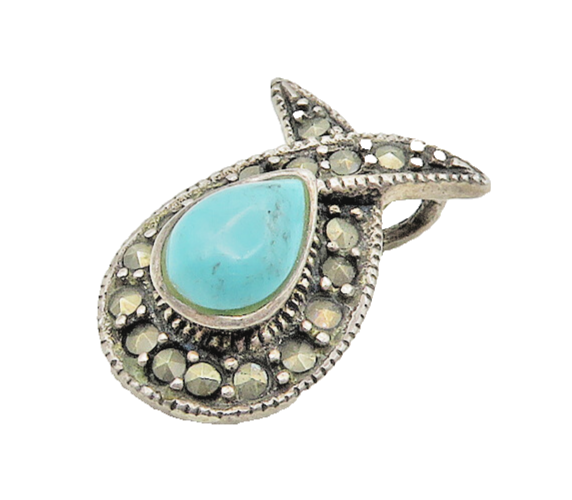 925 Vintage Silver Vintage Turquoise & Marcasite Ribbon Pendant PT14442