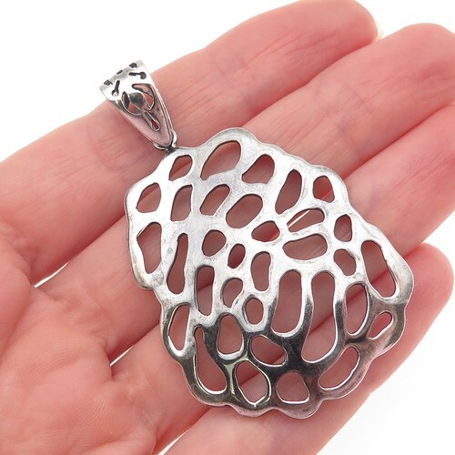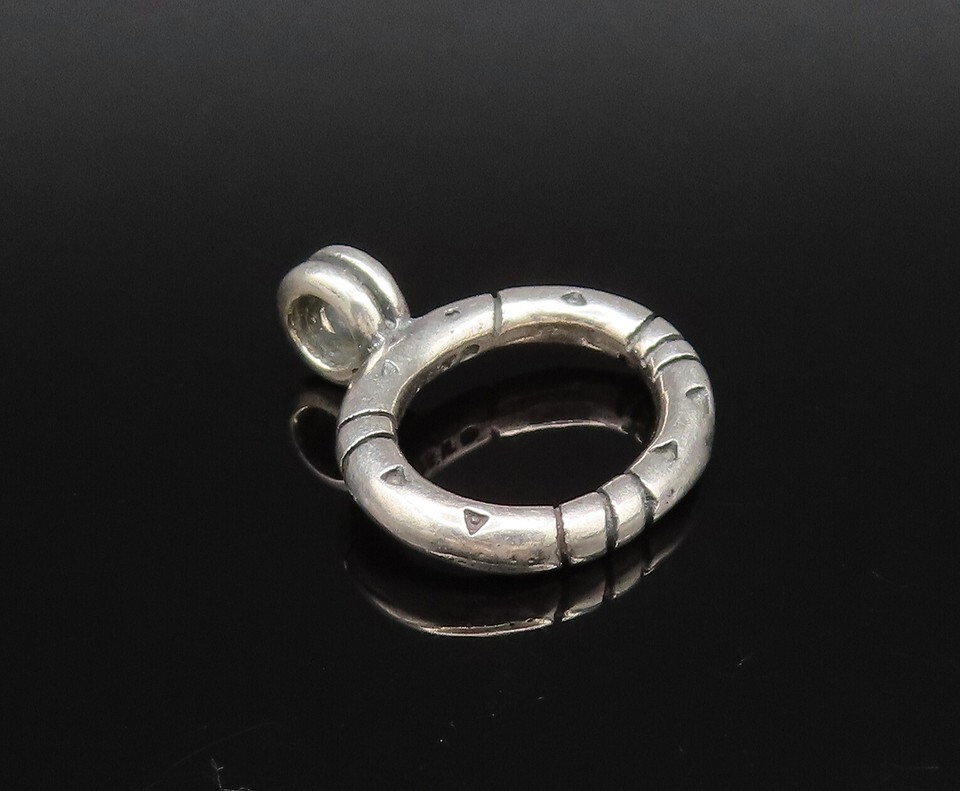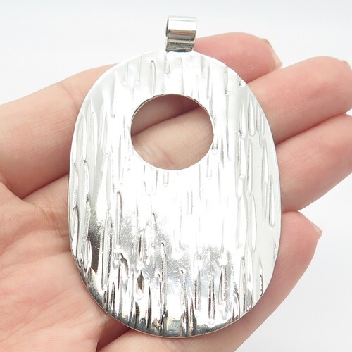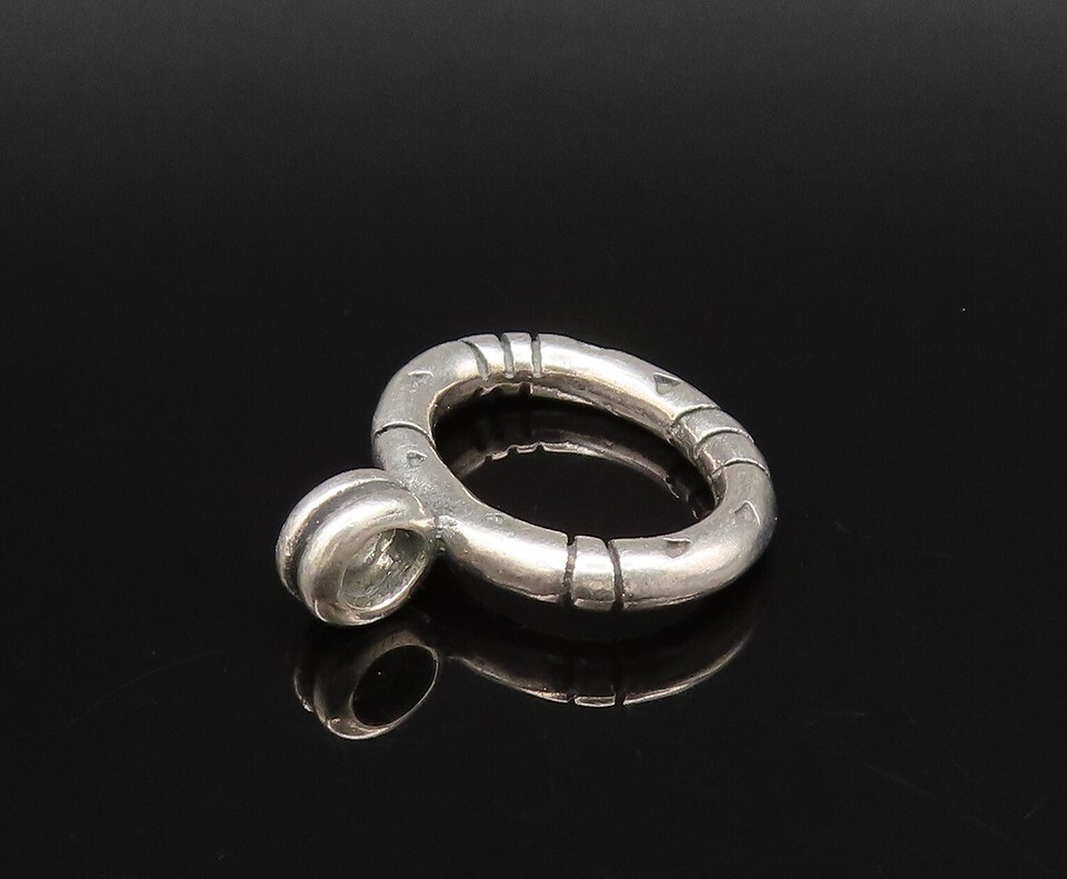 925 Silver Vintage Carved Lines & Triangles Open Oval Drop Pendant PT21787