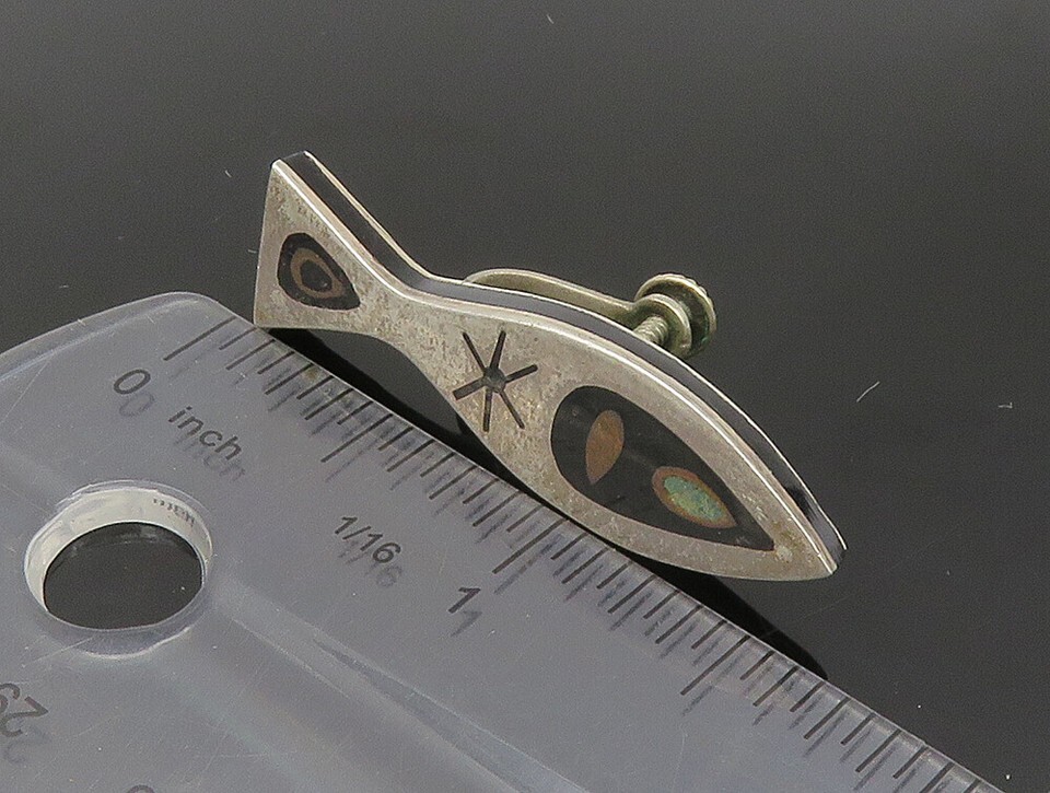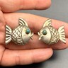 HAB MEXICO 925 Silver Vintage Turquoise Fish Non Pierce Earrings EG11569