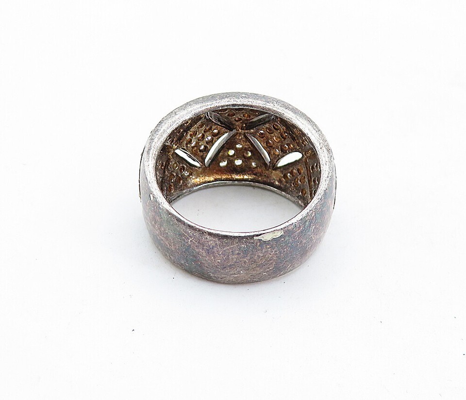 925 Sterling Silver Vintage Pink & White Topaz Oxidized Band Ring Sz 7 RG5775
