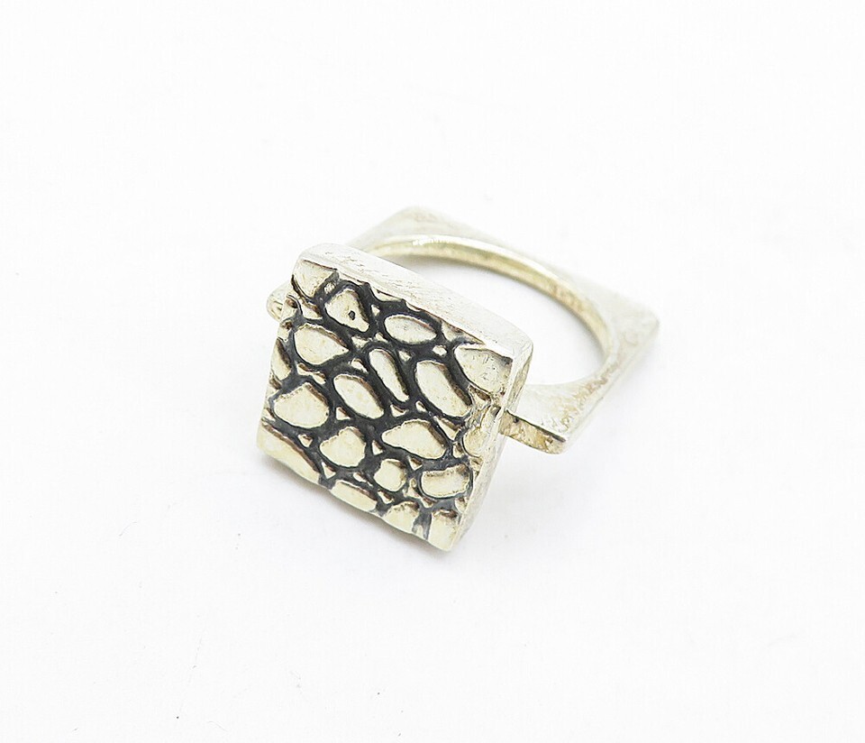 MEXICO 925 Sterling Silver Vintage Cobble Stone Cocktail Ring Sz 8 RG5789