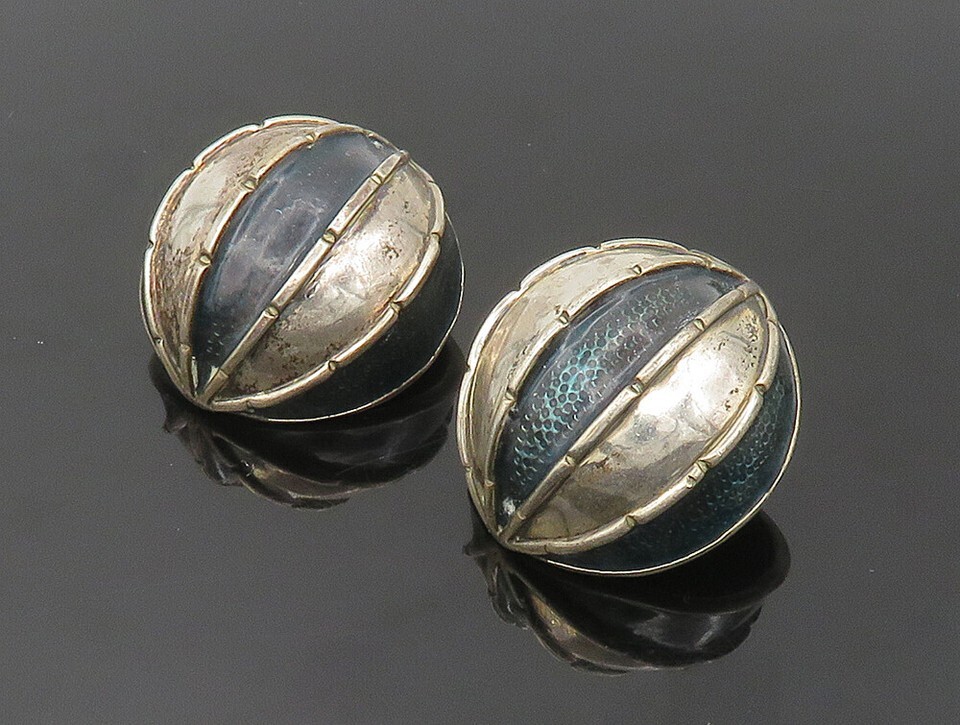 DESIGNER 925 Sterling Silver Vintage Enamel Dome Non Pierce Earrings EG11567