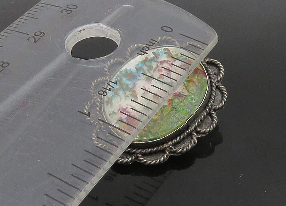ISRAEL 925 Sterling Silver Vintage Antique Mother Of Pearl Brooch Pin BP9122