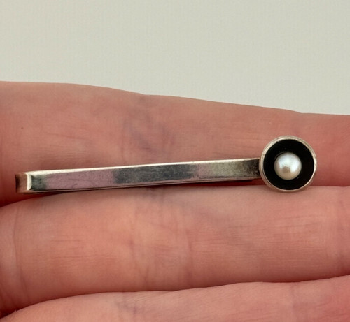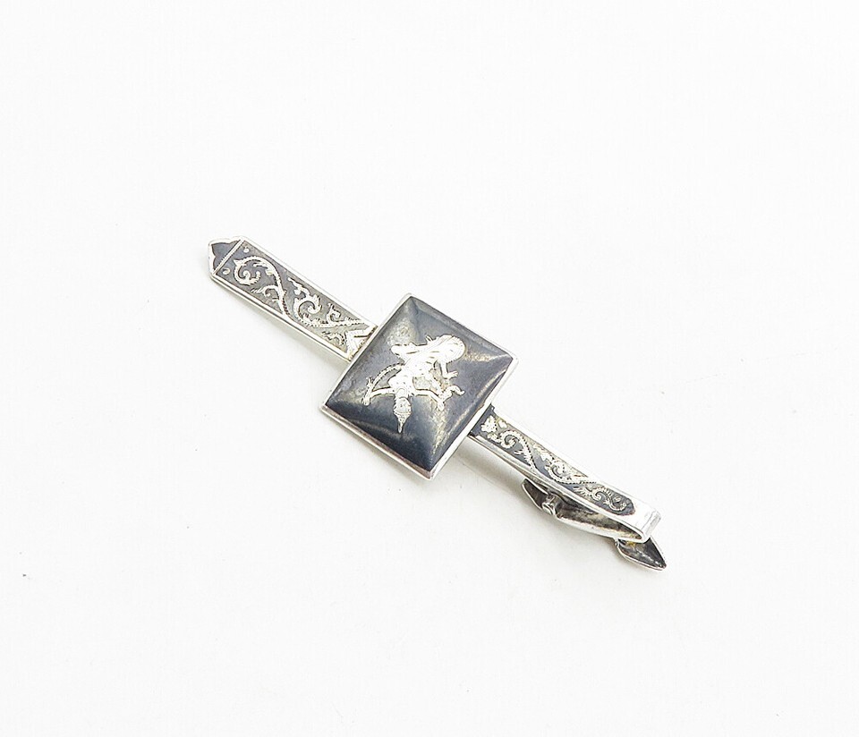 SIAM 925 Sterling Silver Vintage Black Enamel Niello Dancer Tie Clip TR1569