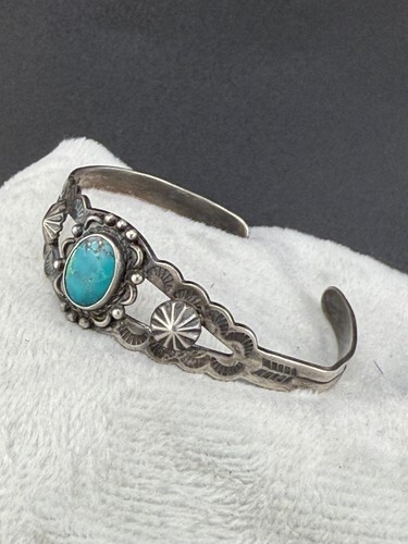 SOUTHWESTERN 925 Sterling Silver Vintage Minimalist Turquoise Bracelet BT9824
