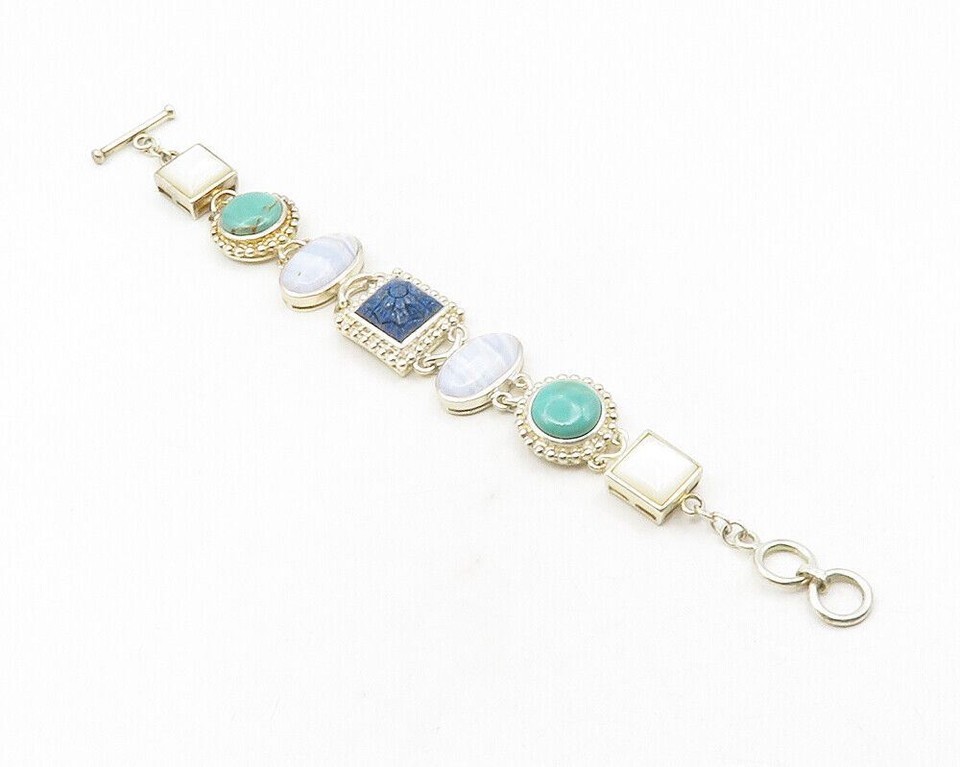 WHITNEY KELLY 925 Silver Vintage Multi Shaped Gemstone Chain Bracelet BT4663