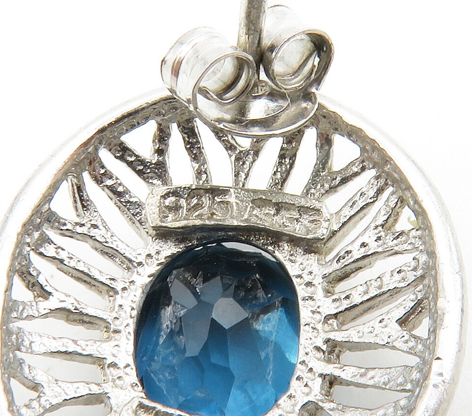 925 Sterling Silver Shiny Blue Topaz Floral Dome Drop Earrings EG7575