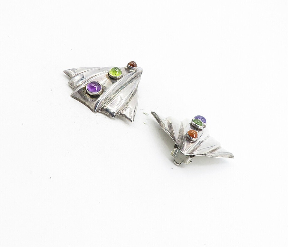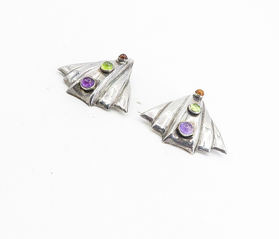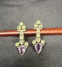 925 Silver Vintage Amethyst Peridot & Citrine Non Pierce Earrings EG4456