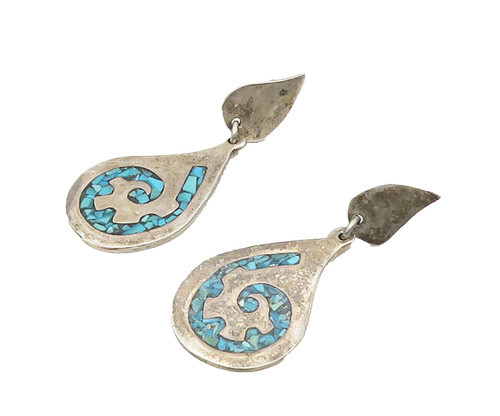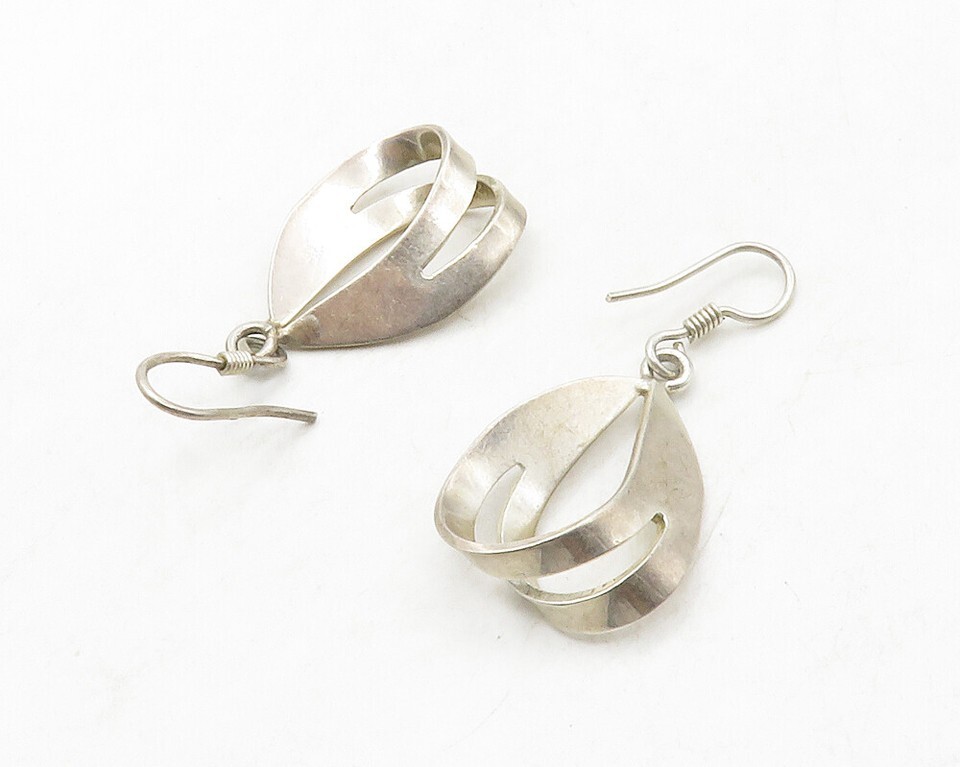 MEXICO 925 Sterling Silver Vintage Smooth Cutout Design Drop Earrings EG6764