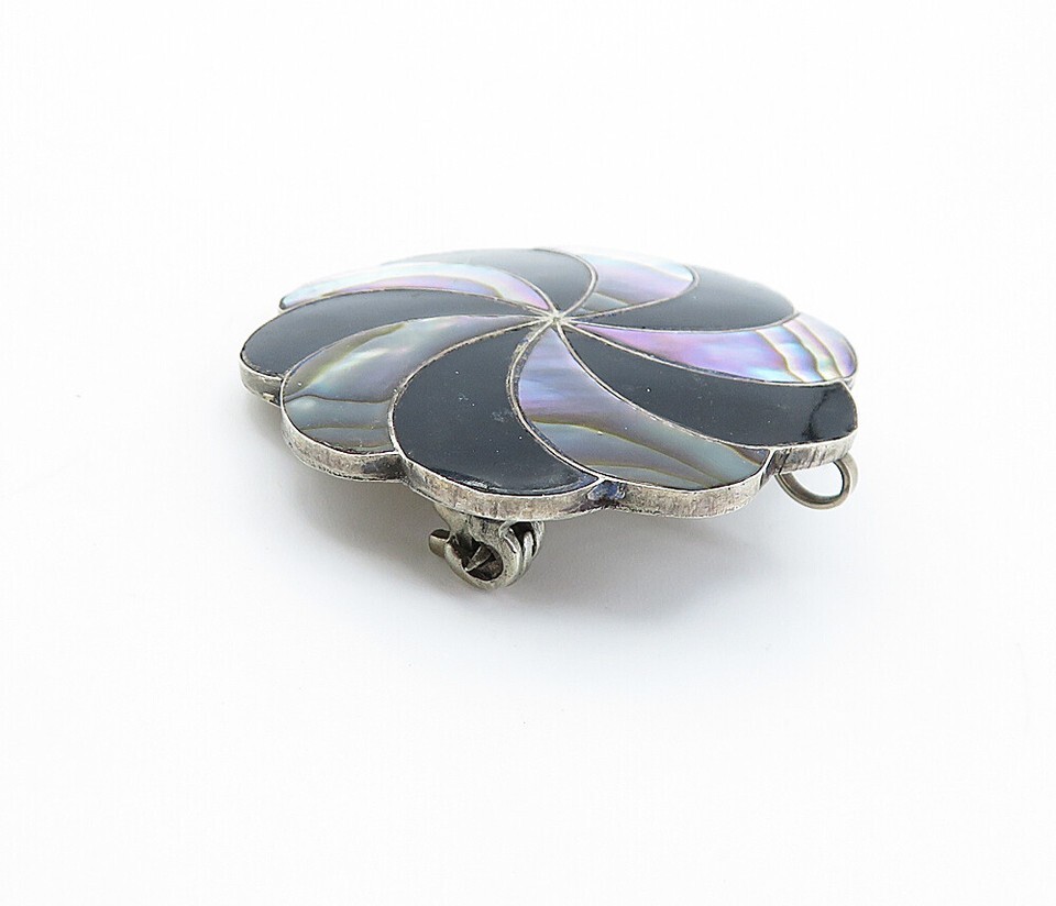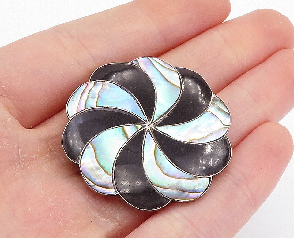 CB MEXICO 925 Silver Vintage Abalone Shell & Black Onyx Brooch Pin BP2818