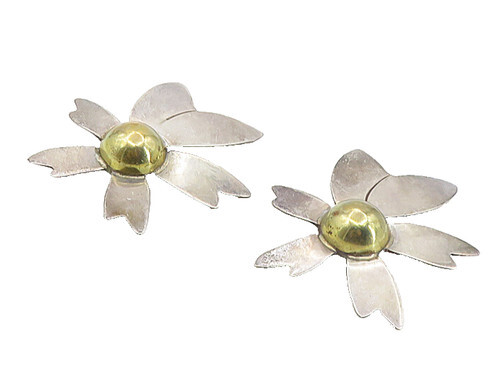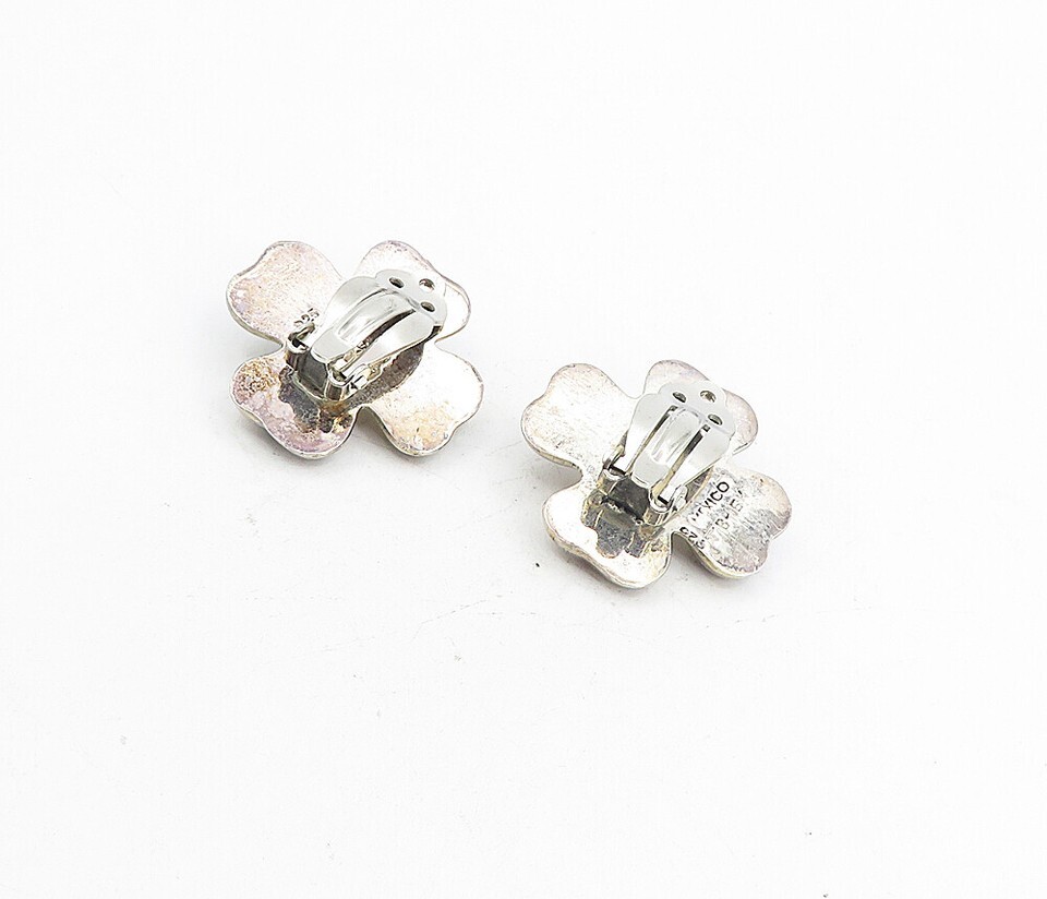 MEXICO 925 Sterling Silver Vintage Hollow Flower Non Pierce Earrings EG4476
