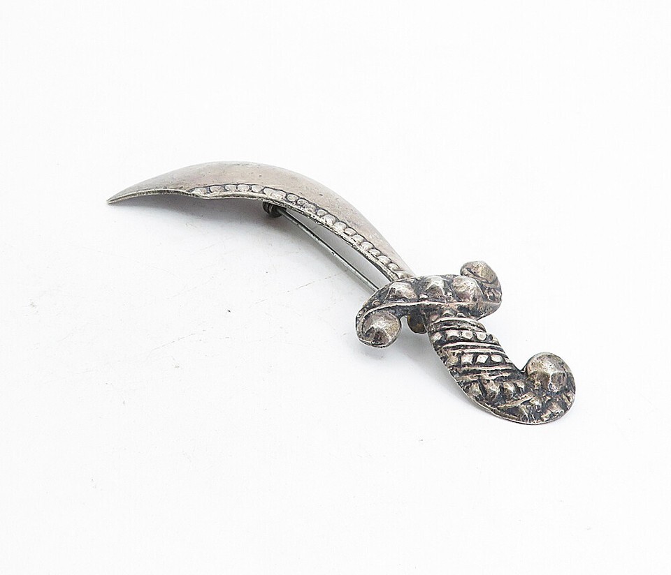 925 Sterling Silver Vintage Antique Dark Tone Dagger Motif Brooch Pin BP3036